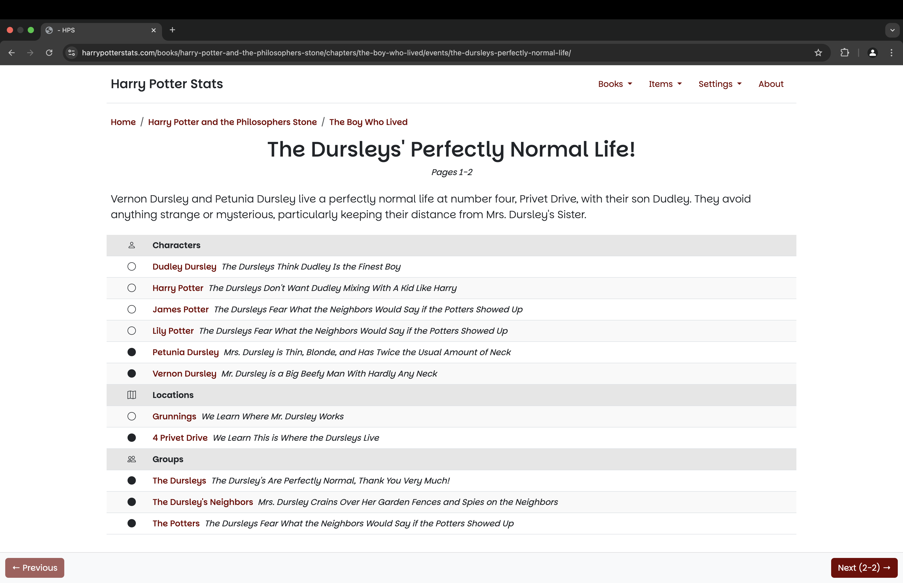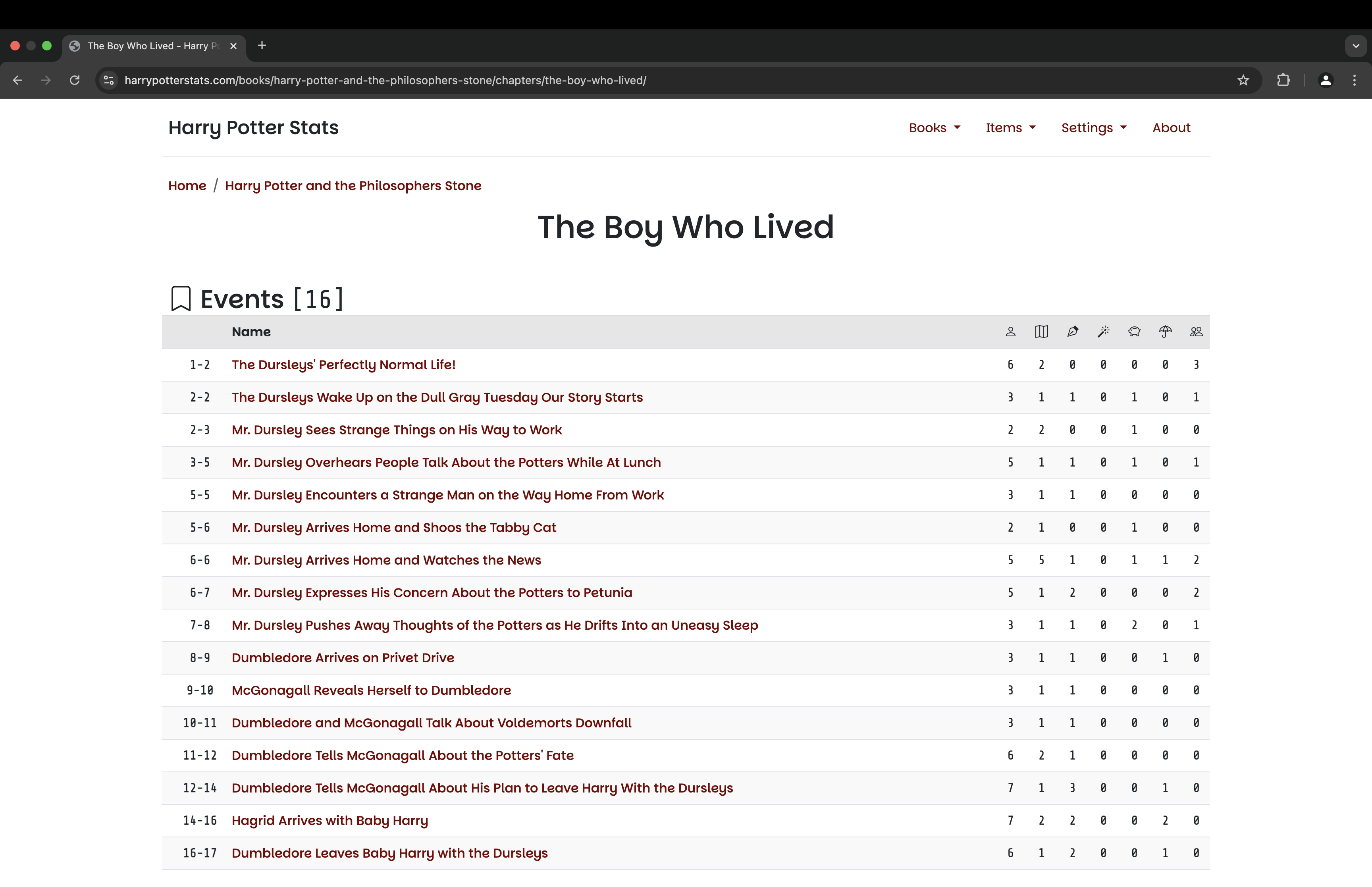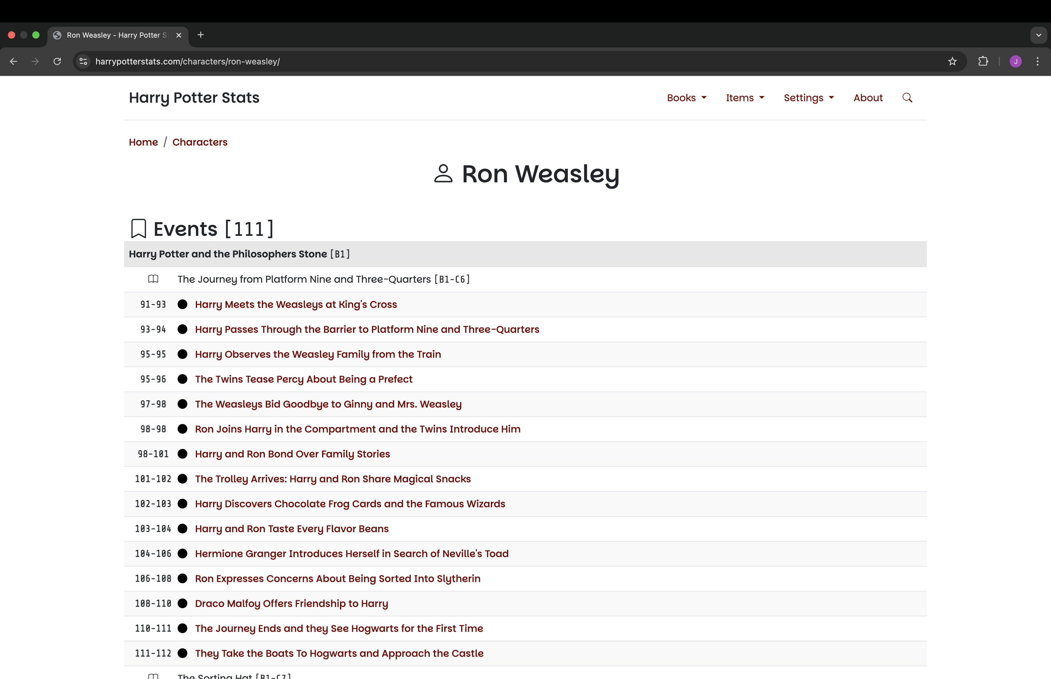 Being able to jump from a passage in the book to a timeline of events from the Items perspective is what makes this website valuable.