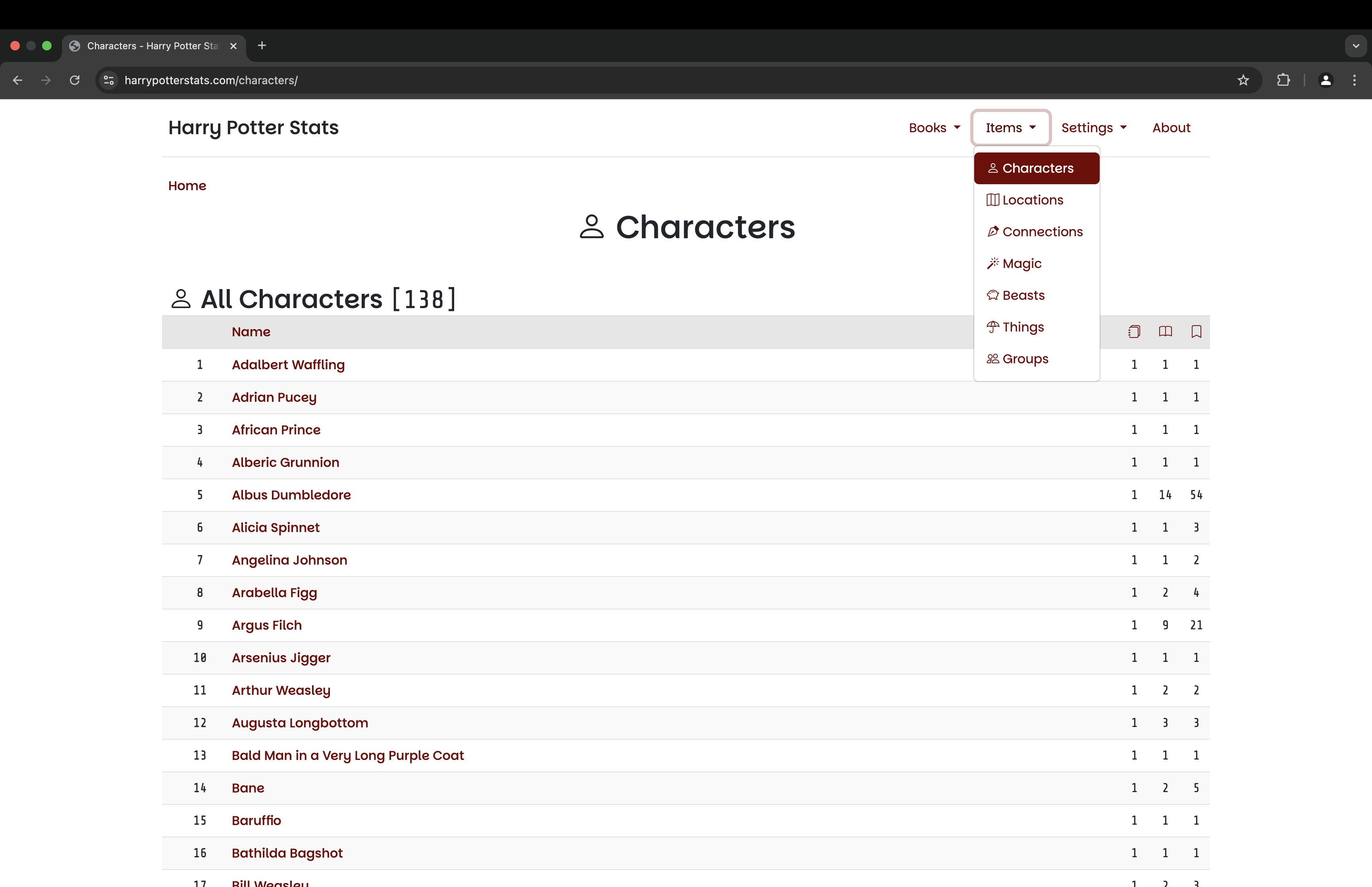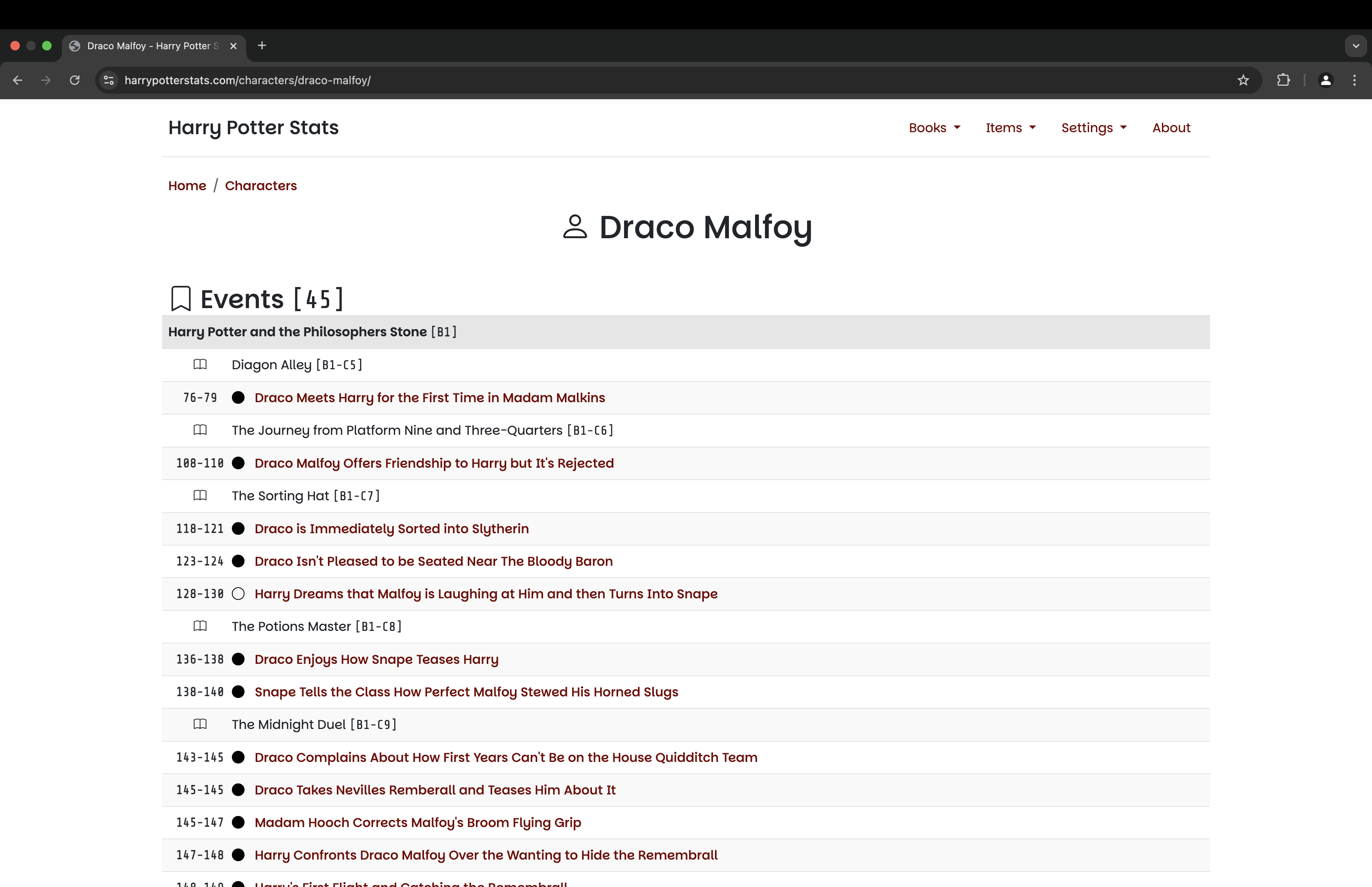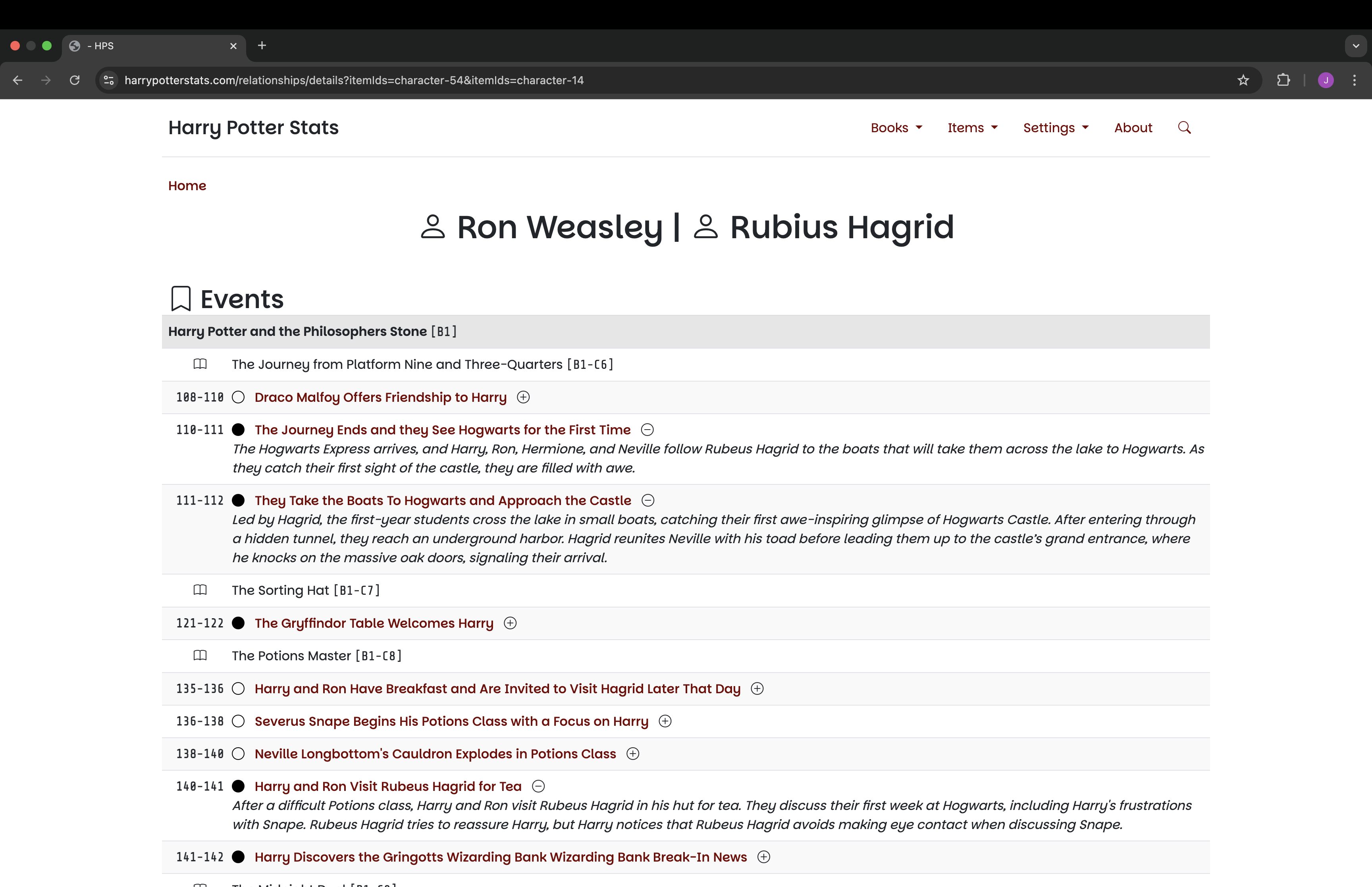 The purpose of this website is to create a comprehensive database that connects of all the events that occur in the Harry Potter books.